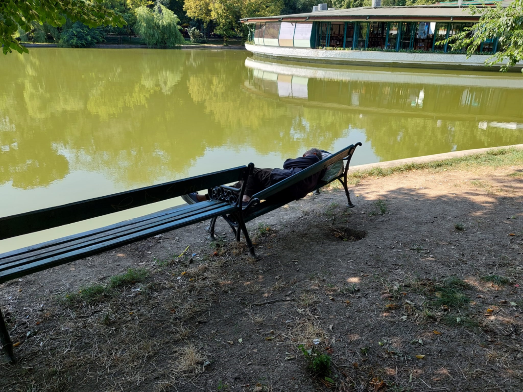 Pe băncile de sunt cât de cât omenești e greu să mai stai. Roiesc muște și alte zburătoare care ciupesc rău. În parcul din inima Bucureștiului, peisajul e dezolant, urât și miroase. Înainte exista un ONG care, zilnic, făcea petiții și scandal. Numită Grup de Inițiativă Civică Cișmigiu, organizația a dispărut din peisaj odată cu rezultatul alegerilor electorale. Au rămas pe poziții doar bătrânii care caută un loc de liniște și cei care vor să străbată parcul dar se lovesc de miros. Unul care îți rămâne mult timp în nări și-ți mută ficatul.