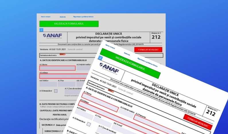 Rubricile precompletate conțin veniturile realizate pentru anul 2020, impozitul pe venit și contribuțiile sociale eventual datorate pentru anul 2020, respectiv veniturile estimate pentru anul 2021.