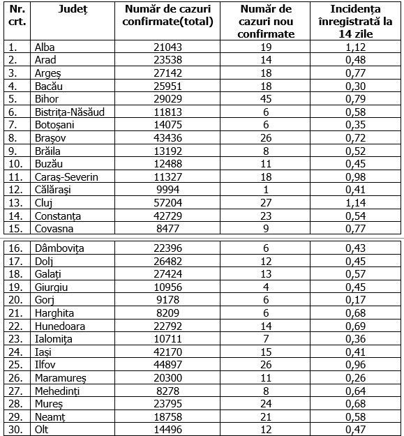 Au fost efectuate 21.321 de teste RT-PCR (12.294 în baza definiției de caz și a protocolului medical și 9.027 la cerere) și 10.253 de teste rapide antigenice.