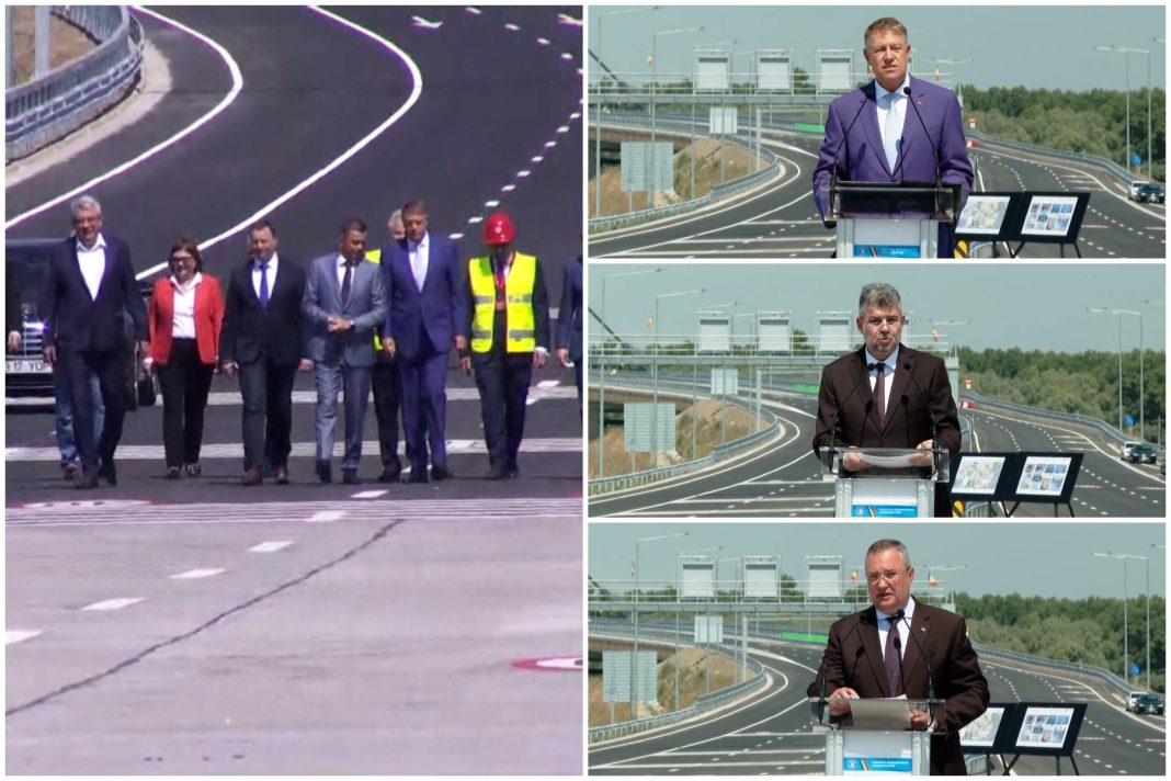 La ceremonie au participat preşedintele Klaus Iohannis, preşedintele Senatului, Nicolae Ciucă, premierul Marcel Ciolacu, dar şi ministrul Transporturilor şi Infrastructurii, Sorin Grindeanu.