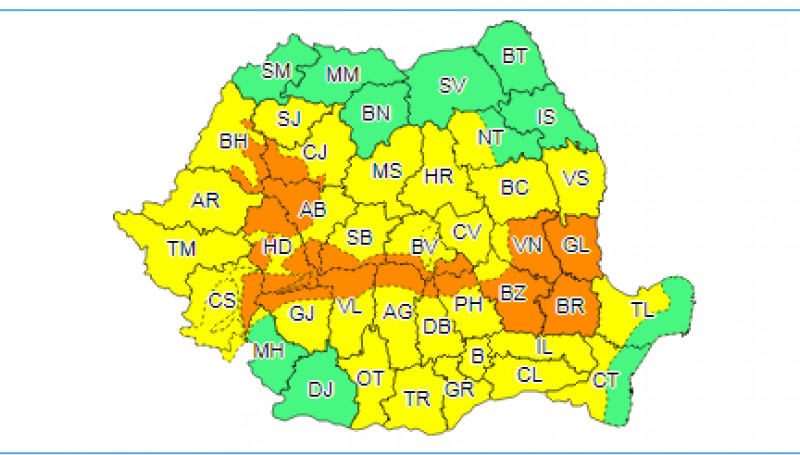 Codul portocaliu a intrat în vigoare joi, la ora 10:00, și este valabil 24 de ore.