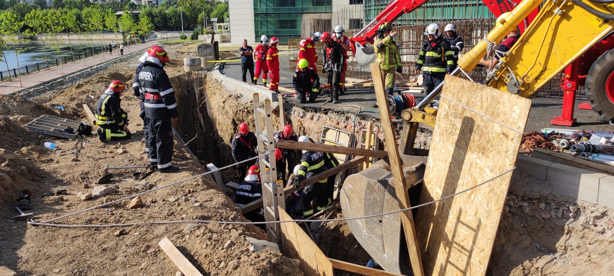 „Intervenim pentru extragerea mai multor persoane surprinse de prăbușirea unui mal de pământ în zona Biblioteca Națională. Concomitent se stabilizează malurile șanțului, care are peste doi metri adâncime”, au precizat oficialii ISU București-Ilfov.