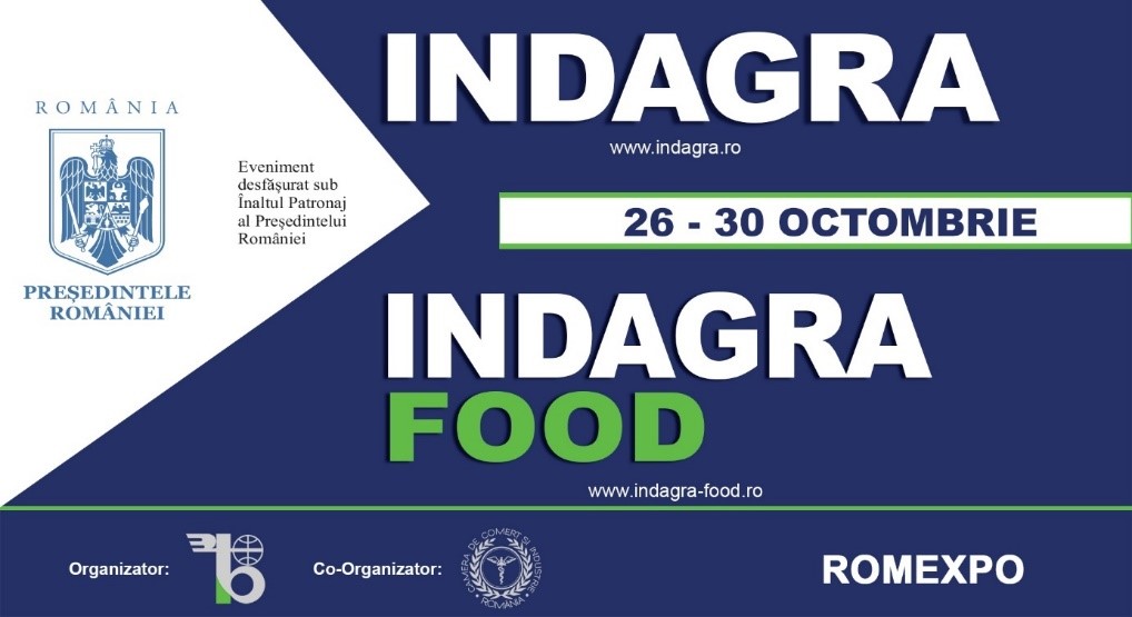 ROMEXPO împreună cu Camera de Comerț și Industrie a României organizează, între 26 – 30 octombrie, INDAGRA – cel mai cunoscut eveniment agricol din România și INDAGRA FOOD – târgul internațional pentru industria alimentară. Ambele manifestări se desfășoară sub Înaltul Patronaj al Președintelui României.