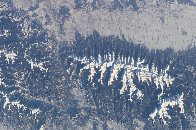 „Carpații Meridionali surprinși de astronauții NASA, de pe Stația Spațială Internațională.