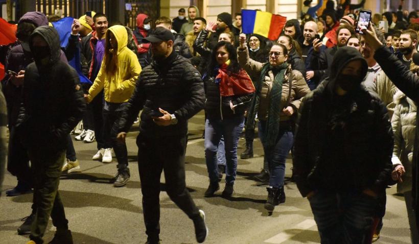 Protestarii au sfidat noile limitări impuse de Guvern, care interzic circulaţia după ora 20.00. Participanţii la protestul anti-restricţii din Bucureşti au ocupat, luni seara, în jurul orei 20.15, centrul Pieţei Victoriei. Ei au scandat lozinci printre care „Masca jos”, „Jos Guvernul”, „Libertate te iubim, ori învingem, ori murim”, „Jos criminalii”. Protestarii au mărșăluit pe străzile oraşului, transmiţând acelaşi gen de mesaje, dar şi cântând imnul naţional „Deşteaptă-te române”, relatează Agerpres. Manifestarea de protest a fost iniţiată pe o pagină de socializare.