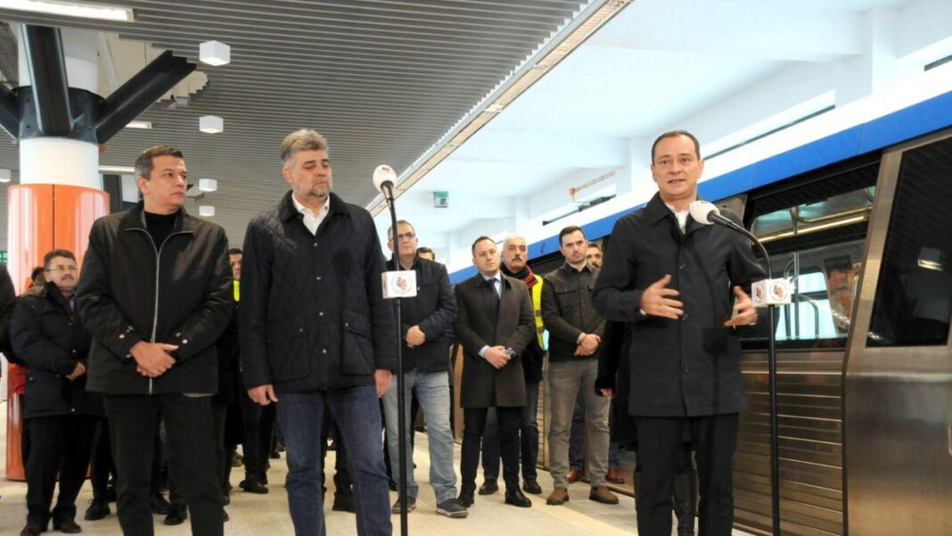 Noua stație a Magistralei M2, Tudor Arghezi, este funcțională! Președintele PSD, Marcel Ciolacu, ministrul Transporturilor și Infrastructurii Sorin Grindeanu și Daniel Băluță, primarul Sectorului 4 al Capitalei, au participat, marți, la inaugurarea stației.