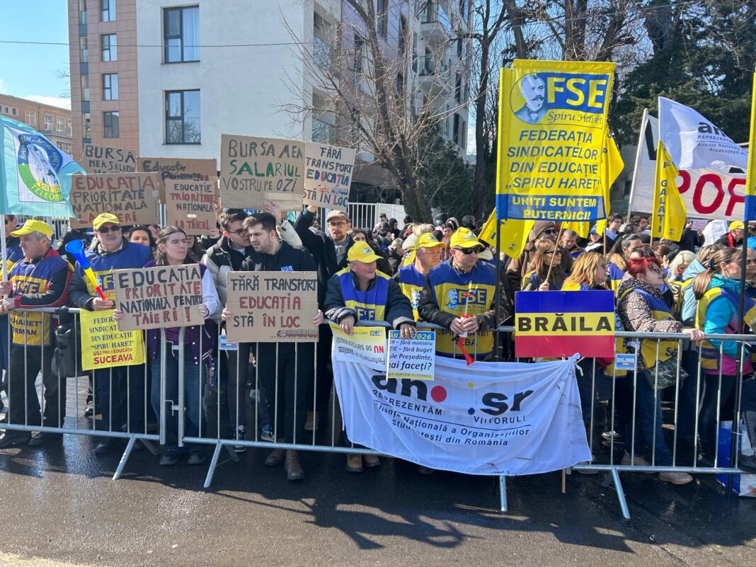 Astăzi, Federația Sindicatelor Libere din Învățământ, Federația Sindicatelor din Educație Spiru Haret și Federația Națională Sindicală Alma Mater au organizat un protest la Palatul Cotroceni. Evenimentul, desfășurat sub sloganul „Școală săracă – Țară needucată”, reunește aproximativ 500 de participanți, inclusiv cursanți și cadre didactice, nemulțumiți de măsurile politice adoptate de Guvernul Ilie Bolojan.