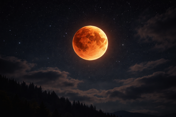 Astăzi are loc o eclipsă totală de Lună, cunoscută popular ca „Luna Sângerie”, un fenomen în care satelitul Pământului capătă o nuanță roșiatică în timpul trecerii prin umbra planetei. Această eclipsă totală este vizibilă în mare parte a Asiei de Est, Australiei și Pacificului, iar în unele regiuni poate fi urmărită după apusul soarelui.