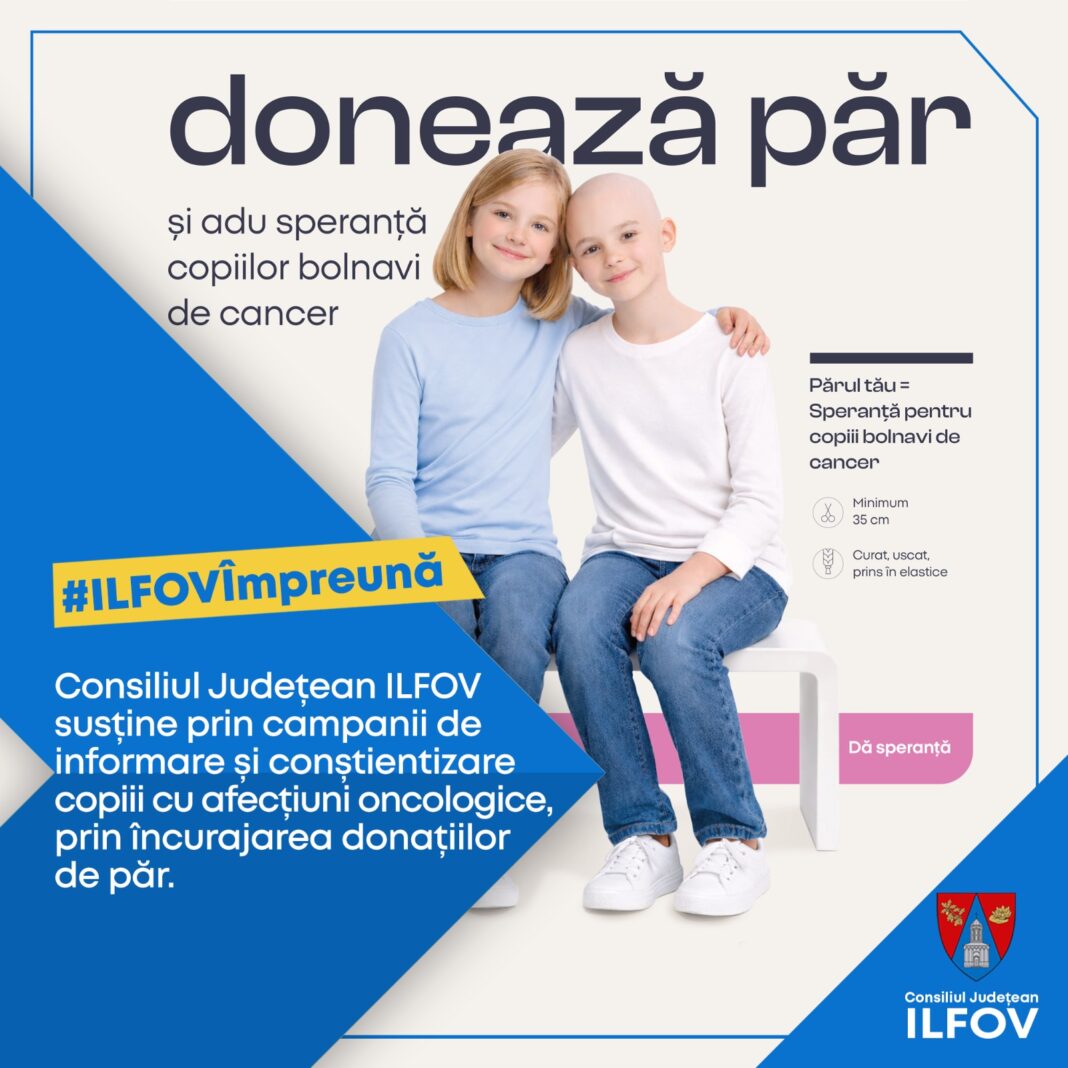 Continuă campania de promovare a proiectului „Donează păr pentru copii”, derulat de Consiliul Județean Ilfov în parteneriat cu Asociația Hairmatching. Această inițiativă sprijină copiii pacienți oncologici prin realizarea și oferirea de peruci din păr natural, vitale pentru menținerea stimei de sine și a echilibrului emoțional în perioada tratamentelor.