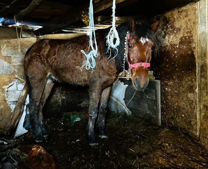 Atrocitatea s-a întâmplat în urmă cu două nopți. Poliția Ilfov și Protecția Animalelor CJ Ilfov au mers la fața locului și au preluat calul bătut și plin de răni, împreună cu un alt câine.