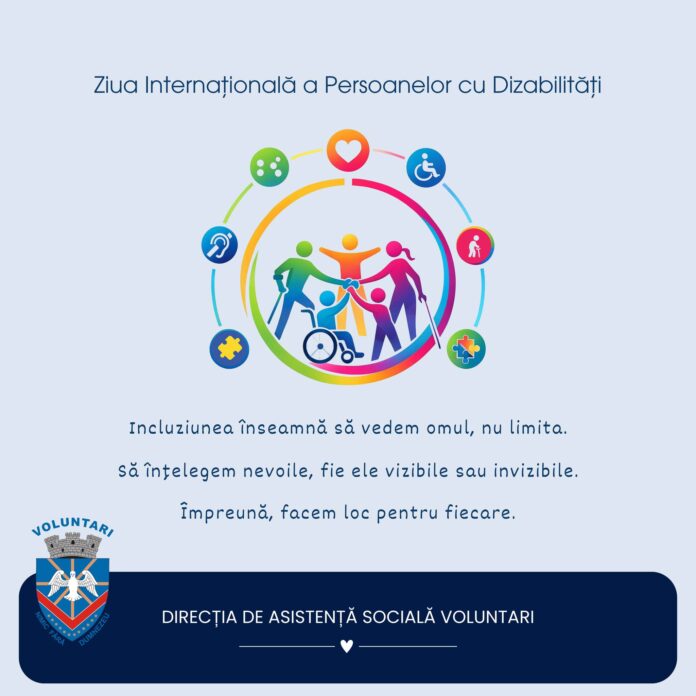 Astăzi, 3 decembrie, de Ziua Internațională a Persoanelor cu Dizabilități, Direcția de Asistență Socială Voluntari (DASV) își reafirmă crezul și scopul primordial, de a fi alături în fiecare zi de cei care au cea mai mare nevoie. Persoanele cu dizabilități și familiile lor sunt, pentru DASV, nu doar un mediul de lucru sau „obiect” de activitate, dar și mijloc prin care incluziunea se transformă din concept în realitate, prin sprijin concret, însoțire, empatie și sentiment de apartenență la o comunitate unită.