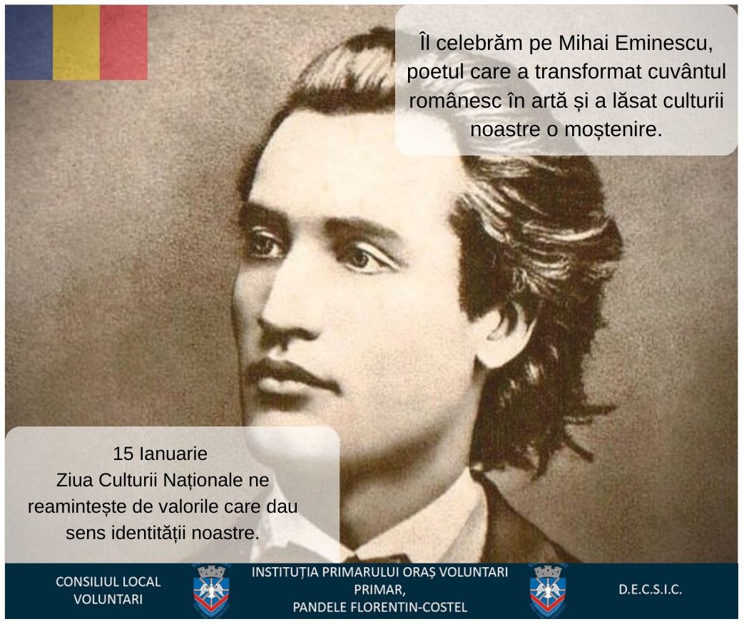 „Data de 15 ianuarie marchează Ziua Națională a Culturii, un moment de profundă semnificație pentru identitatea românească, celebrat odată cu aniversarea nașterii lui Mihai Eminescu. Poet, gânditor și jurnalist, Eminescu rămâne o personalitate fundamentală a culturii române, a cărui operă a definit sensibilitatea, limba și conștiința națională. Prin creația sa, a oferit literaturii române o expresie artistică de excepție și a contribuit decisiv la afirmarea valorilor culturale autentice. Această zi este un prilej de reflecție asupra patrimoniului cultural românesc și de reafirmare a respectului față de moștenirea spirituală care ne unește și ne definește”, a mai comunicat DECSIC.