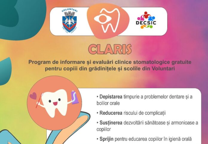 Primăria Orașului Voluntari, prin Direcția Educație Cultural Sportivă și Identitate Comunitară, în colaborare cu Fundația Academia de Medicină, lansează proiectul „Claris”, prin care oferă evaluări stomatologice gratuite pentru copiii din grădinițele și școlile din oraș. Anunțul a fost făcut de primarul orașului Voluntari, Florentin Pandele, pe pagina sa de Facebook.
