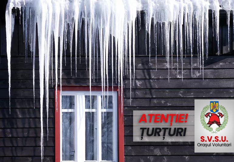 În această perioadă, din cauza variațiilor de temperatură, se formează țurțuri de gheață pe acoperișuri, streașini și clădiri, care pot ajunge rapid la dimensiuni semnificative și extrem de periculoase. Căderea acestora poate provoca accidentări grave sau pagube materiale, avertizează Serviciul Voluntar pentru Situații de Urgență (SVSU).