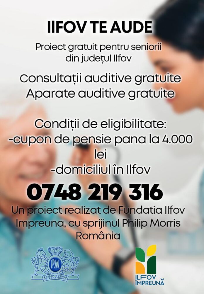 Proiectul oferă consultații auditive personalizate, un diagnostic complet al auzului, aparate auditive de calitate superioară, cu reglaje profesionale și garanție extinsă. Campania se adresează pensionarilor cu domiciliul sau reședința în județul Ilfov, cu venit mediu de până la 4.000 de lei per membru de familie.
