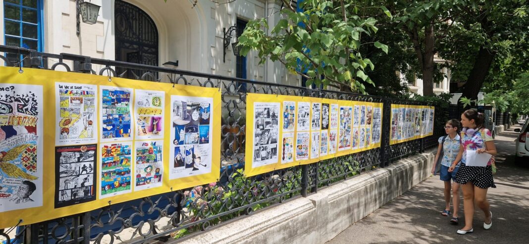 Cu ocazia aniversării a 100 de ani ai Institutului Francez în România, în perioada 4 – 30 iulie 2024, lucrările câștigătoare ale Olimpiadei de Benzi Desenate – ediția a V-a, sunt expuse outdoor, pe gardul Institutului Francez din București. Expoziția se va muta în perioada 1 – 25 august 2024, pe gardul Casei Filipescu Cesianu – Muzeul Vârstelor din București.