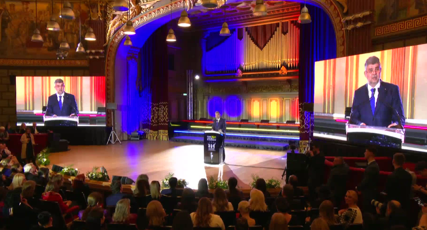Premierul Marcel Ciolacu, prezent, marţi seară, la Gala CONAF- ”Women in Economy”, şi-a început discursul mulţumind Maiei Sandu, prezentă în sală: ”Aş începe şi eu să-i mulţumesc unei doamne speciale, cu adevărat o doamnă dârză, puternică care-şi apărăr poporul supus unui război nu armat, unui război hibrid. Da, doamna preşedinte Maia Sandu, sunteţi cea mai dârză femeie pe care am cunoscut-o, cum este şi normal după mama mea”.