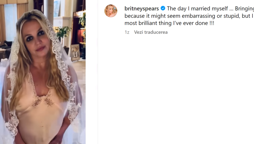 Vedeta pop americană Britney Spears a distribuit pe contul său de Instagram o fotografie în care apare în rochie de mireasă, însoţită de un text cu anunţul că s-a căsătorit cu ea însăşi, potrivit EFE.