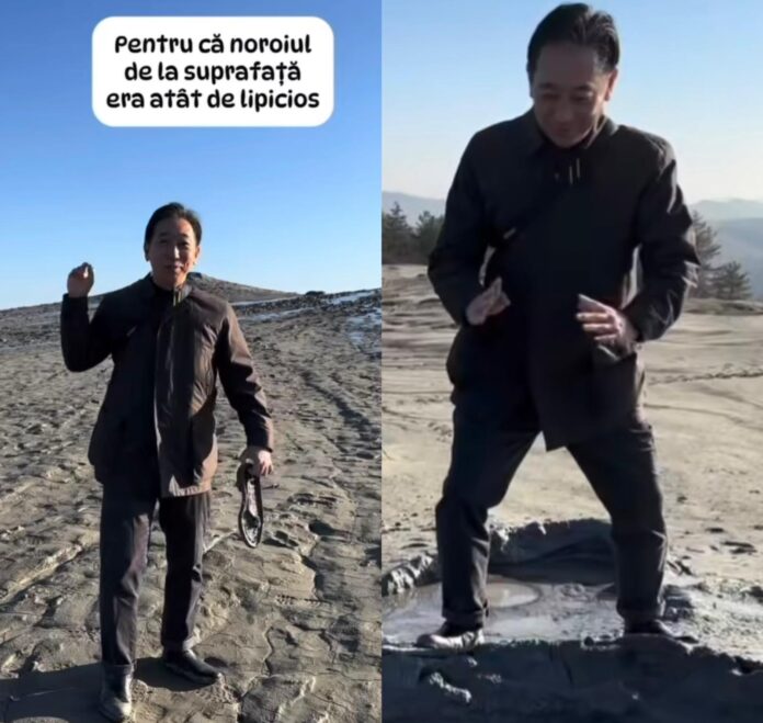 Unul dintre cele mai comentate momente din clip este cel petrecut la Vulcanii Noroioși, în zona Pâclele Mari. Acolo, ambasadorul povestește că noroiul extrem de lipicios i-a „înghițit” unul dintre pantofi, situație care l-a amuzat și pe care a ales să o împărtășească publicului online. „Pentru că noroiul este atât de lipicios, pantoful meu a fost pur și simplu înghițit”, spune diplomatul în clipul publicat pe paginile oficiale ale Ambasadei Japoniei în România.