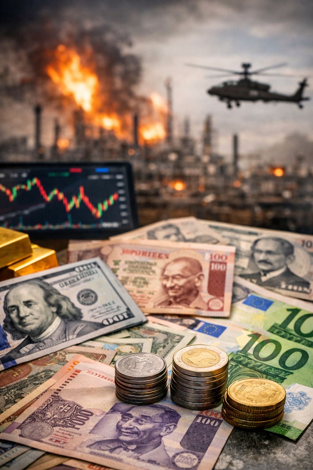Unele monede ale țărilor dependente de importurile de energie au fost afectate de creșterea costurilor la petrol. De exemplu, rupia indiană s-a apropiat de un minim istoric față de dolar, pe fondul scumpirii petrolului și al presiunilor asupra economiei locale.