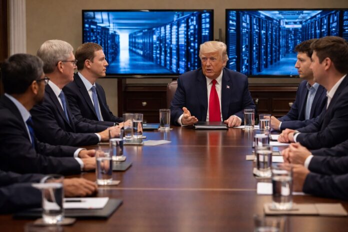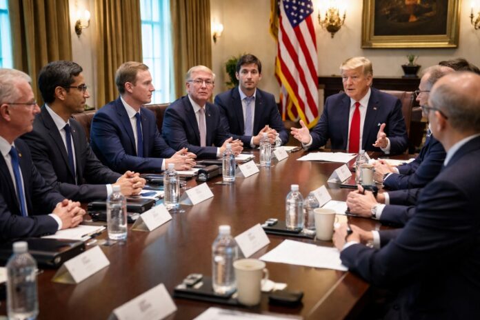 Donald Trump s-a întâlnit cu lideri ai unor mari companii de tehnologie, inclusiv Google, Meta și OpenAI, pentru a discuta impactul pe care centrele de date pentru inteligență artificială îl au asupra consumului de energie. Întâlnirea are loc într-un moment în care cererea de electricitate pentru infrastructura AI crește rapid.