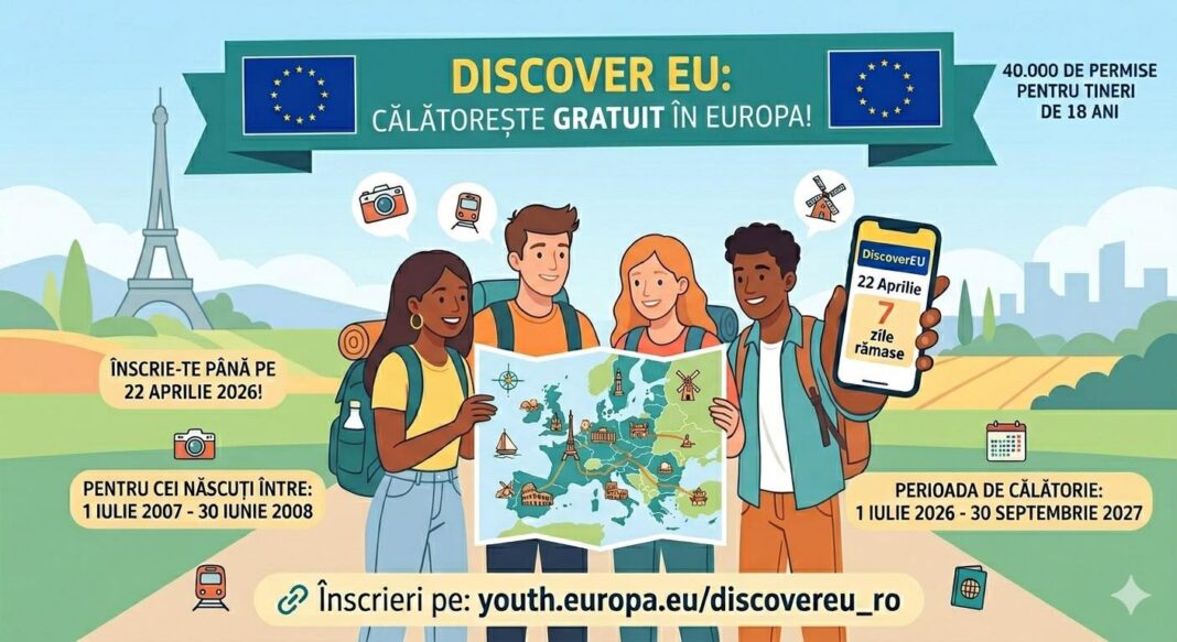DiscoverEU, parte a programului Erasmus+, le oferă celor selectați posibilitatea de a beneficia și de reduceri la cazare, transport local, activități culturale și sportive. Cei selectați vor putea călători în perioada 1 iulie 2026 – 30 septembrie 2027.