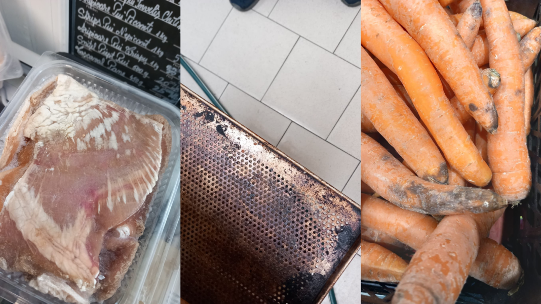- spații alimentare întreținute necorespunzător, cu reziduuri alimentare și impurități pe paviment;