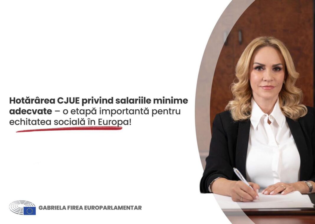 Curtea de Justiție a UE (CJUE) a confirmat, printr-o hotărâre pronunțată recent, validitatea Directivei privind salariile minime adecvate, un pas decisiv pentru protejarea lucrătorilor cu venituri mici și pentru reducerea inegalităților salariale în Europa. Anunțul a fost făcut de europarlamentara social-democrată Gabriela Firea, pe pagina sa de Facebook.