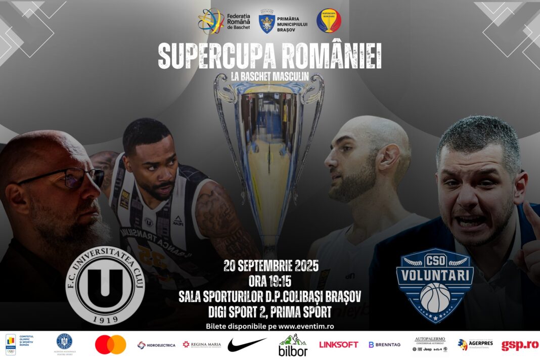Deținătoarea Cupei României la baschet masculin, CSO Voluntari, joacă sâmbătă 20 septembrie, finala Supercupei României, în compania campioanei sezonului trecut, U-BT Cluj-Napoca. Este lupta pentru primul trofeul al noului sezon.