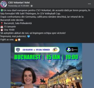 Echipa ilfoveană joacă în Europa după ce a înregistrat o înfrângere în campionatul intern, contra rivalei CSM Volei Alba Blaj. Fetele noastre au nevoie să-și refacă moralul printr-o victorie și fac apel la suporteri să vină mâine la Sala Polivalentă din București, să le susțină. „Vă așteptăm alături de noi, să împingem echipa spre victorie! Împreună, mai puternici”, a transmis echipa.