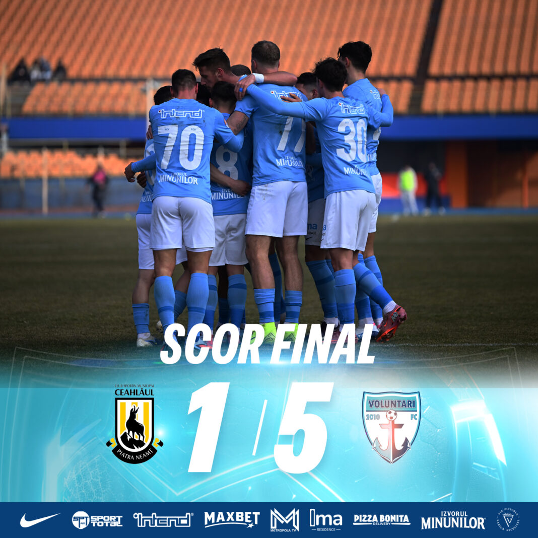 FC Voluntari a câștigat de manieră categorică – scor 5-1 – meciul disputat în deplasare cu Ceahlăul Piatra Neamț. Echipa ilfoveană și-a asigurat astfel calificarea în play-off-ul Ligii 2, cu două etape înainte de finalul sezonului regulat.