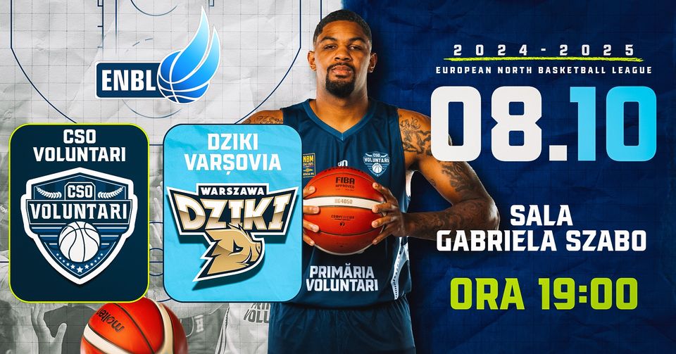 CSO Voluntari își începe aventura europeană în noul sezon al European North Basketball League (ENBL), competiție în care anul trecut a jucat finala. Primul meci, împotriva echipei Dziki Varșovia se joacă marți, 8 octombrie, de la ora 19:00 și va fi transmis în direct în exclusivitate de Metropola TV.
