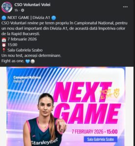 Mâine, voleibalistele CSO Voluntari joacă acasă, cu Rapid București. Hai la volei!
