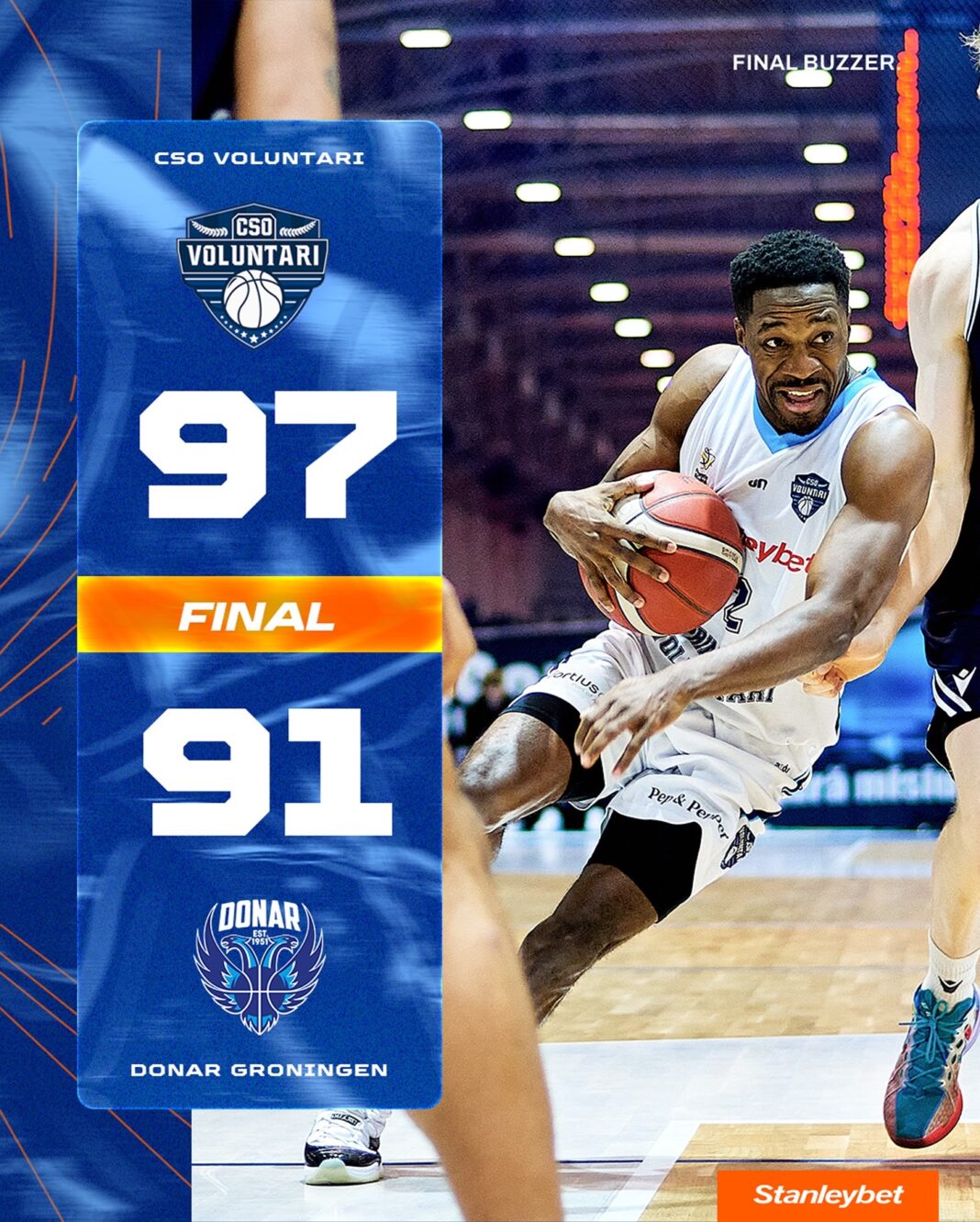 CSO Voluntari și-a continuat astăzi parcursul perfect din acest sezon al European North Basketball League (ENBL), după ce a depășit echipa olandeză Donar Groningen, cu scorul de 97-91. Campioana en titre CSO Voluntari are acum patru victorii din tot atâtea meciuri jucate în acest sezon al competiției.