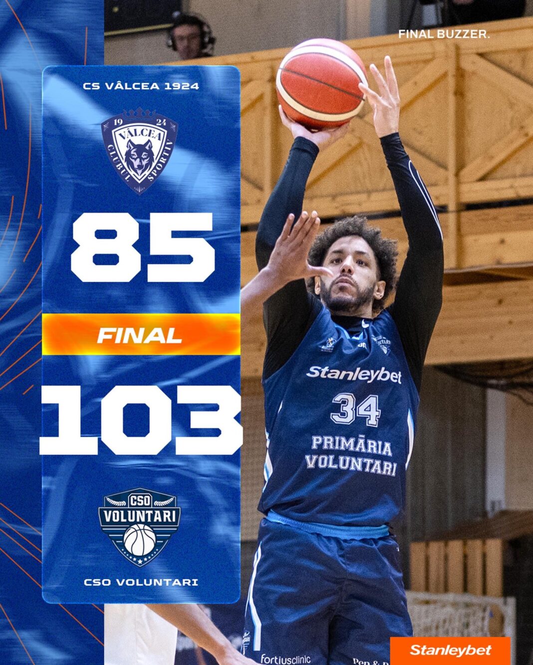 CSO Voluntari a câștigat meciul disputat în deplasare la Râmnicu Vâlcea, în compania echipei locale, CSM. Scorul a fost 103-85 în favoarea ilfovenilor, care au făcut o partidă excelentă și au stabilit un nou record stagional de triple în LNBM.
