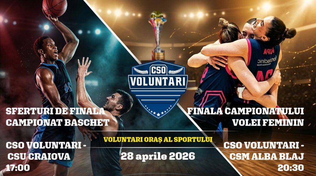 Zi deosebită în Voluntari – Oraș al Sportului. Echipele Clubului Sportiv Orășenesc joacă astăzi meciuri importante pe teren propriu, în Sala „Gabriela Szabo”. Voleibalistele CSO Voluntari se pot încorona campioane naționale dacă trec de CSM Volei Alba Blaj, iar baschetbaliștii clubului ilfovean dau piept cu oltenii de la SCM U Craiova, în sferturile de finală ale ligii.