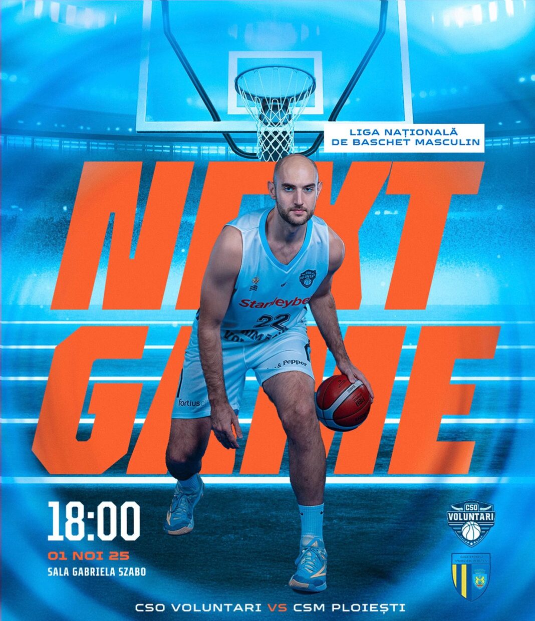 Sâmbătă, 1 noiembrie, baschetbaliștii CSO Voluntari evoluează pe teren propriu, unde vor primi vizita echipei CSM Ploiești.