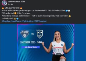 Sâmbătă, voleibalistele CSO Voluntari joacă acasă, cu CSM Constanța. Hai la volei!