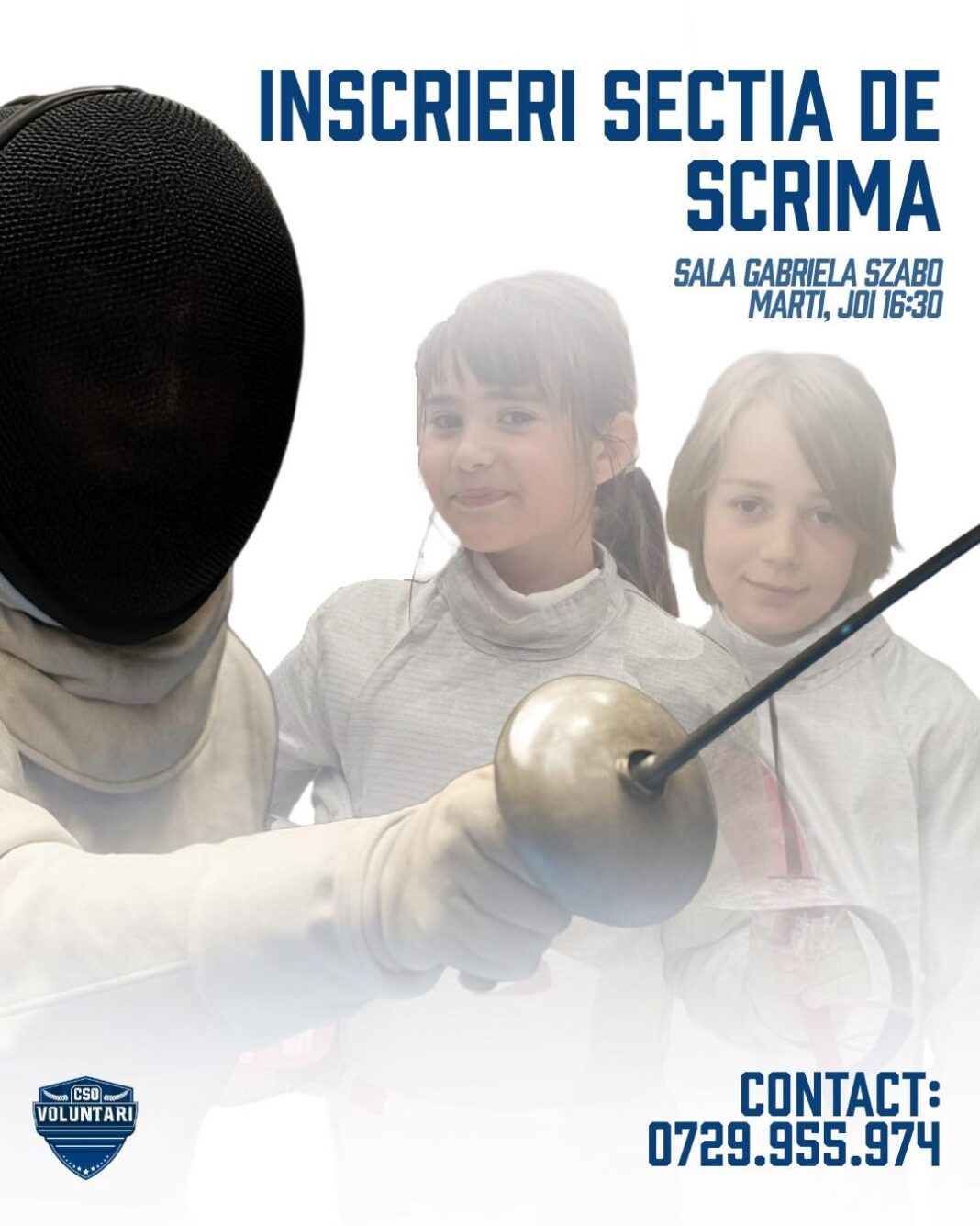 Secția de scrimă CSO Voluntari face înscrieri și invită tinerii pasionați de sport să devină viitori floretiști sau spadasini. „Descoperă scrima, sportul care antrenează mintea la fel de mult ca trupul!”, îndeamnă clubul ilfovean pe pagina sa de Facebook.