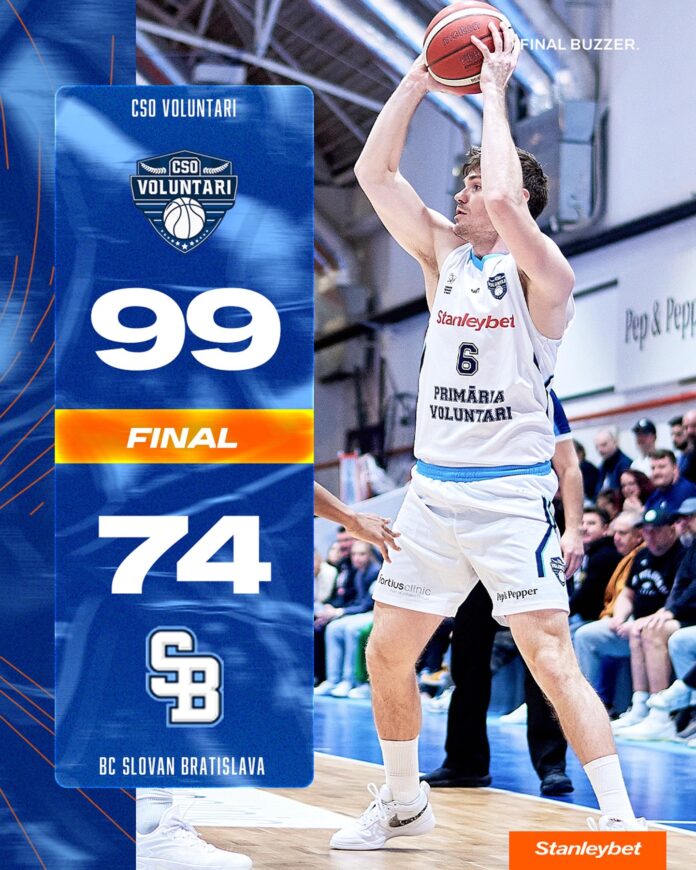 CSO Voluntari și-a confirmat statutul de favorită și a câștigat categoric întâlnirea cu Slovan Bratislava, scor 99 – 74. Echipa ilfoveană s-a calificat astfel în sferturile de finală ale European North Basketball League.