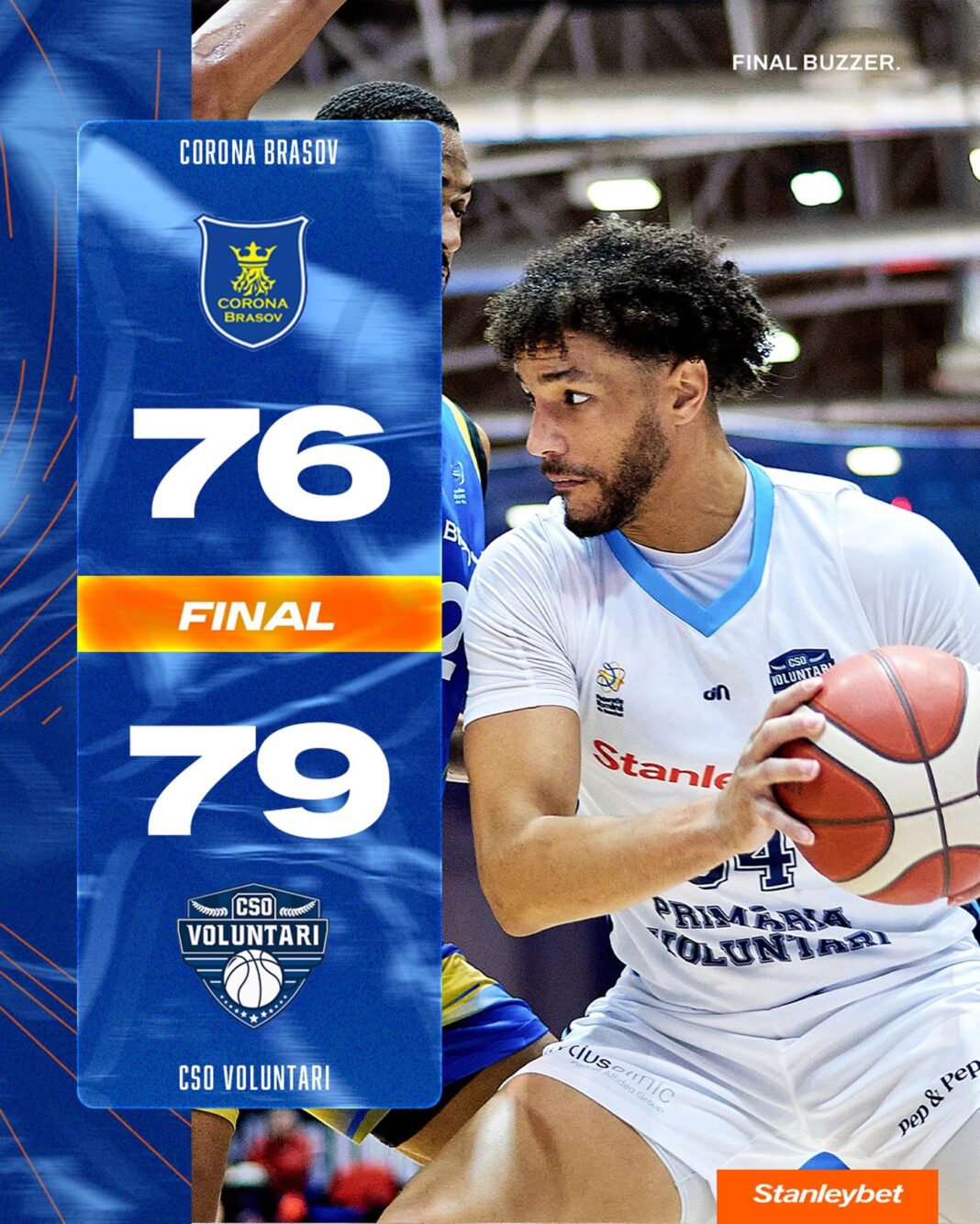 CSO Voluntari a câștigat meciul disputat în deplasare, cu echipa Corona Brașov, scor 79-76, în etapa cu numărul 23 a Ligii Naționale de Baschet Masculin. Este cel de-al șaselea succes consecutiv al echipei ilfovene în prima ligă.