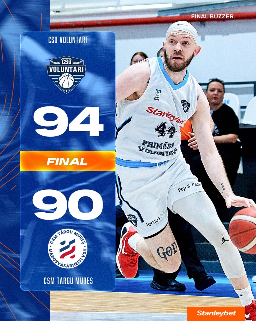 CSO Voluntari a câștigat restanța din etapa cu numărul 28 a Ligii Naționale de Baschet Masculin cu CSM Târgu Mureș, scor 94-90. A fost un meci strâns, pe care ilfovenii l-au câștigat în ultimul sfert de joc. Sâmbătă, ei joacă din nou, tot acasă, de data asta cu Steaua București.