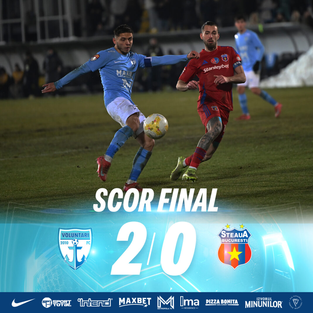 FC Voluntari a câștigat cu 2-0 meciul cu Steaua București din prima etapă a returului (etapa a optsprezecea a sezonului regulat) din Liga2.