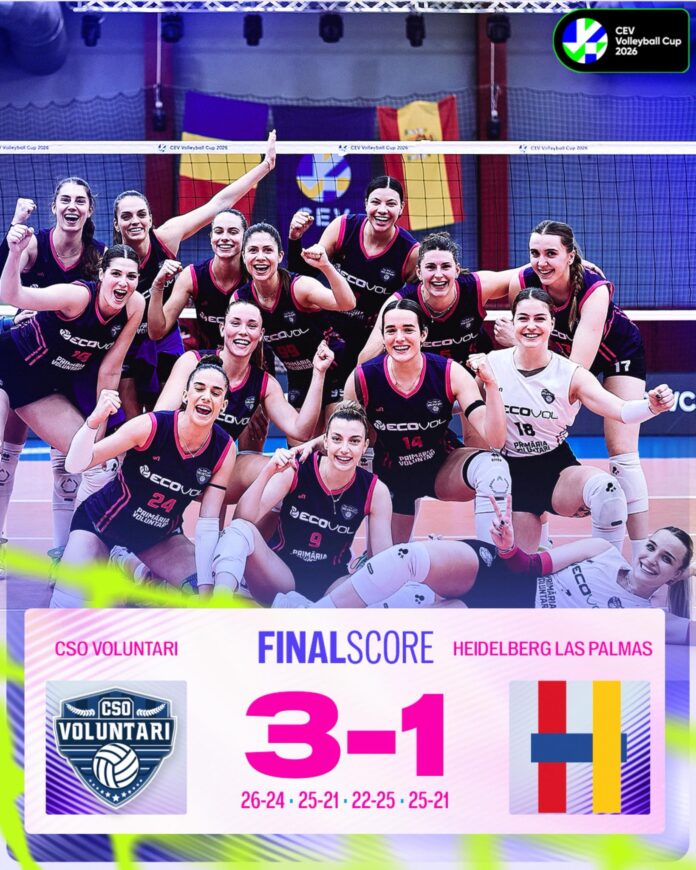 Voleibalistele CSO Voluntari au câștigat și returul partidei cu ibericele de la Club Deportivo Heidelberg Las Palmas, meci contând pentru șaisprezecimile Cupei CEV. Ilfovencele s-au impus cu același scor la seturi ca în meciul tur, 3-1 (26-24, 25-21, 22-25, 25-21) și merg mai departe, în faza optimilor.