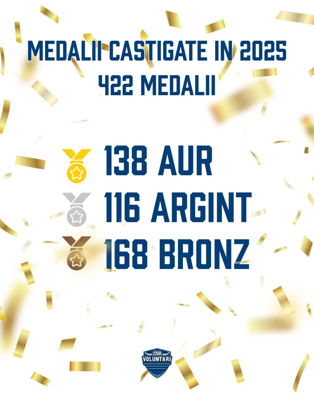 În 2025 munca, seriozitatea și viziunea unui proiect construit pentru performanță au fost confirmate. Clubul Sportiv Orășenesc Voluntari a adunat pe parcursul anului trecut nu mai puțin de 422 de medalii. Dintre acestea, 138 au fost de aur, 116 de argint și 168 de bronz.