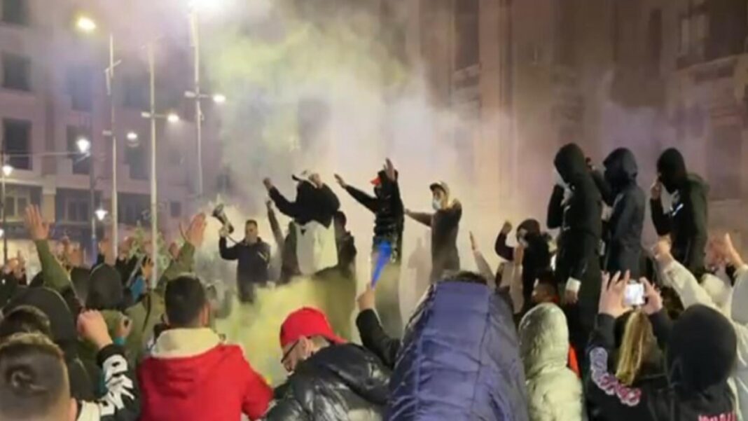 În cea mai mare parte fără măşti de protecţie, manifestanţii au fluturat steaguri tricolore, au suflat în vuvuzele, au scandat împotriva autorităţilor şi au contestat restricţiile, potrivit stiripesurse.ro.