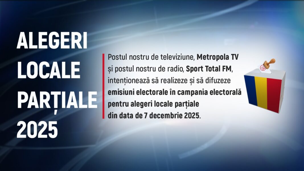 Postul nostru de televiziune, Metropola TV și postul nostru de radio, Sport Total FM, intenționează să realizeze și să difuzeze emisiuni electorale în campania electorală pentru alegeri locale parțiale din data de 7 decembrie 2025