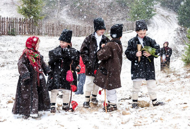 De Anul Nou, nu lipsesc cetele de colindători care, după ce fac urări de sănătate, belşug, bucurie etc., primesc în dar colaci, vin, cârnaţi şi uneori bani. Strigatul peste sat este ceremonialul nocturn al cetelor de feciori pentru „judecarea publică” a celor care au încălcat regulile comunităţii. Acest moment este încheiat cu formula ”Cele rele să se spele, cele bune să se adune!”. Obiceiul este însoţit de aprinderea focurilor, precizează sursa citată anterior. În ajunul Anului Nou, pe înserat, tinerii „mascaţi” pornesc în cete prin satele din nordul Moldovei, purtând costume ale diferitelor personaje – ursul, capra, căiuţii, cerbii etc – şi merg din poartă în poartă, până în zorii zilei.