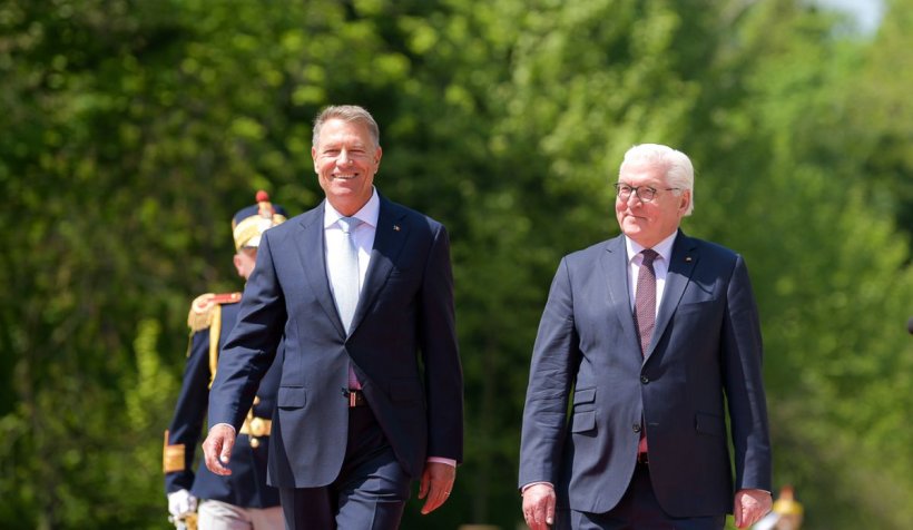 Președintele României, Klaus Iohannis, a susținut miercuri, 4 mai 2022, la Palatul Cotroceni, declarații de presă comune cu Președintele Republicii Federale Germania, Frank-Walter Steinmeier.