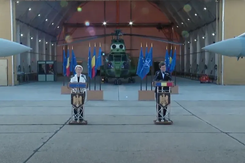 Președintele României, Nicușor Dan, a susținut luni, 1 septembrie 2025, o conferință de presă comună cu Președintele Comisiei Europene, Ursula von der Leyen, la finalul vizitei la Baza 57 Aeriană „Mihail Kogălniceanu” și la Portul Militar Constanța.